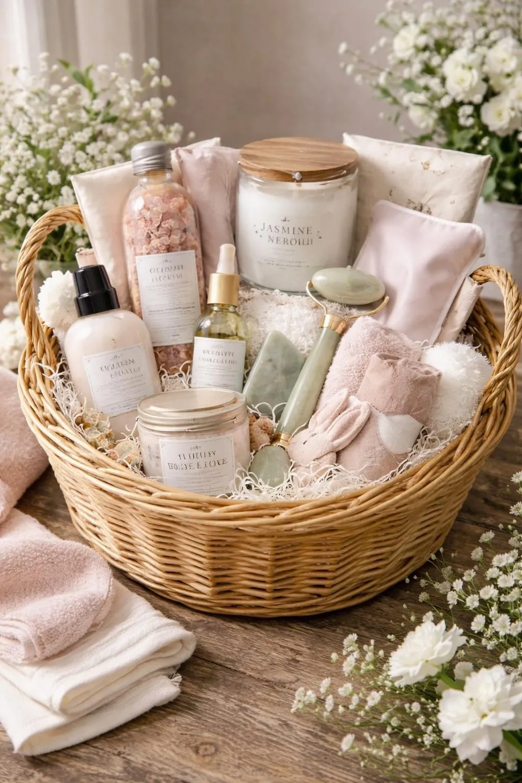 A luxurious body butter or rich lotion in a spring scent — think jasmine, neroli, or fresh citrus — makes an immediate and lasting impression. Pair it with a natural exfoliating sugar scrub and a set of soft bamboo washcloths for a complete at-home spa experience that feels genuinely indulgent.