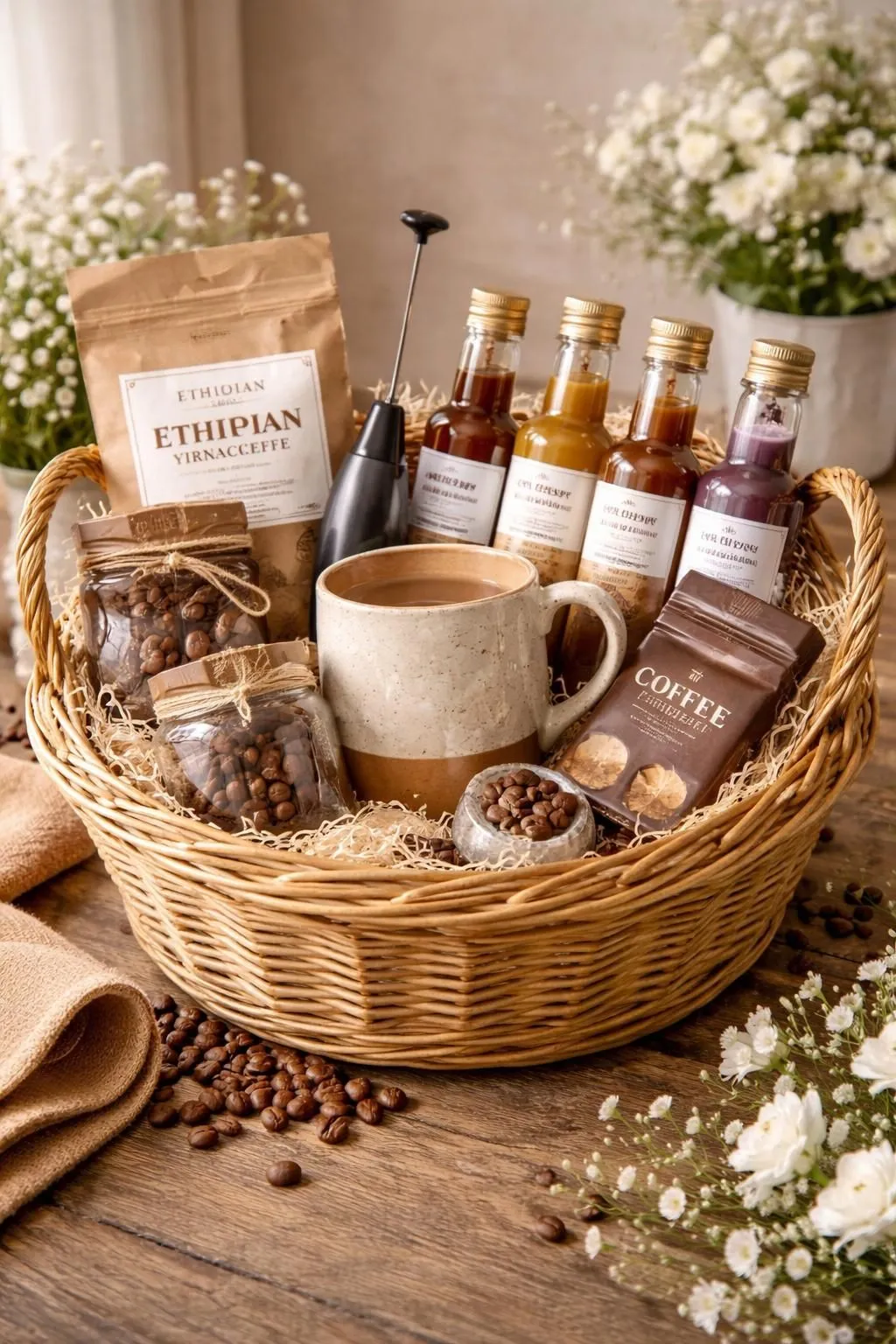 For the person whose morning does not begin until the first cup is in hand, a coffee-themed Easter basket is a guaranteed success — and it is surprisingly easy to build at any budget level.
