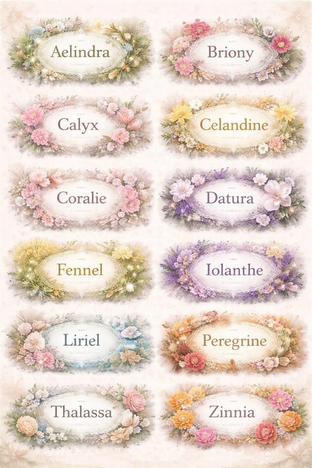 Celandine is a wildflower name with French and Greek roots meaning "swallow." It was used by Tolkien and has a dreamy, literary quality.
